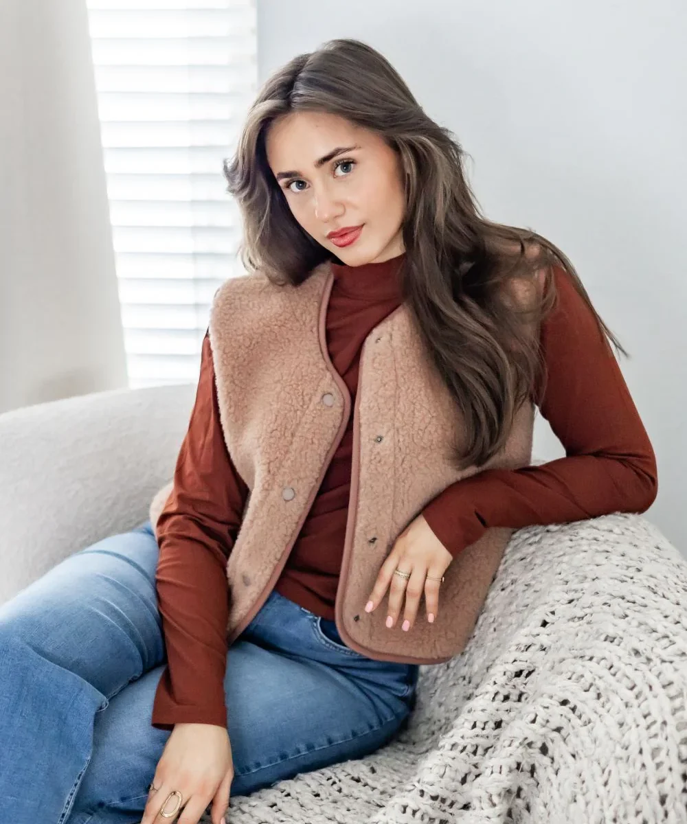 Alwero bodywarmer Tyb light. Deze bodywarmer heet ‘light’, omdat hij gemaakt is van een hele soepele zachte wol. Hij draagt lekker soepel en je kunt het makkelijk overal overheen dragen. Hij kan zowel dicht als open gedragen worden. De kleur heet ‘Rugby Tan’ doet denken aan de kleur oudroze en is daardoor goed te combineren met bordeauxrood bijvoorbeeld.
