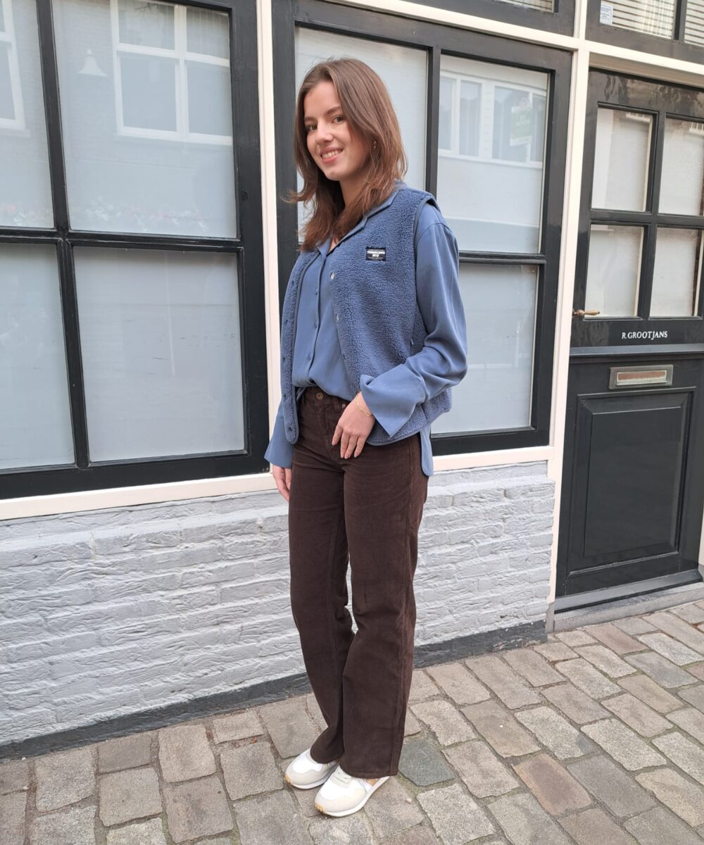 De Lena Loose is een mid-rise jeans met een straight fit. Gemaakt van een mooie fijne ribstof, zoals we die al eerder zagen in de collectie van Kuyichi. Dat wil zeggen dat deze broek tot het midden van de taille komt en een rechte wijdvallende broekspijp. Rondom de heup zit deze mooi aangesloten. Het model heeft een donkerbruine kleur.