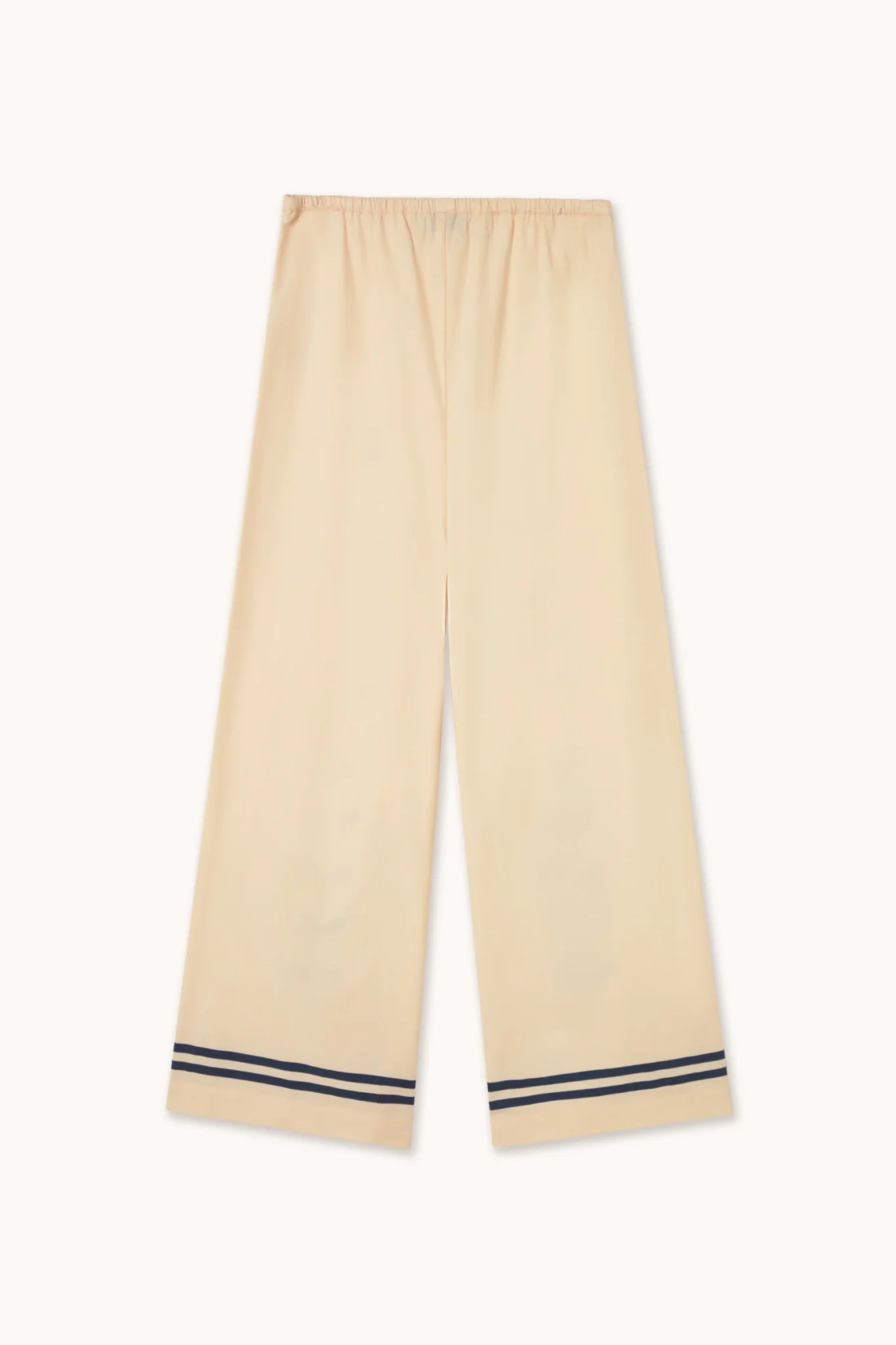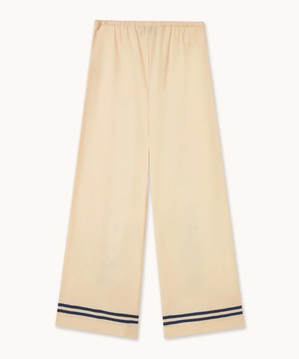 Soepelvallende broek met elastische tailleband en striksluiting. Dankzij de mix van katoen & linnen is dit de ideale zomerbroek. Luchtig, modieus en vooral heel comfortabel. Stijl af met bijpassende blouse of draag er een wit t-shirt op.