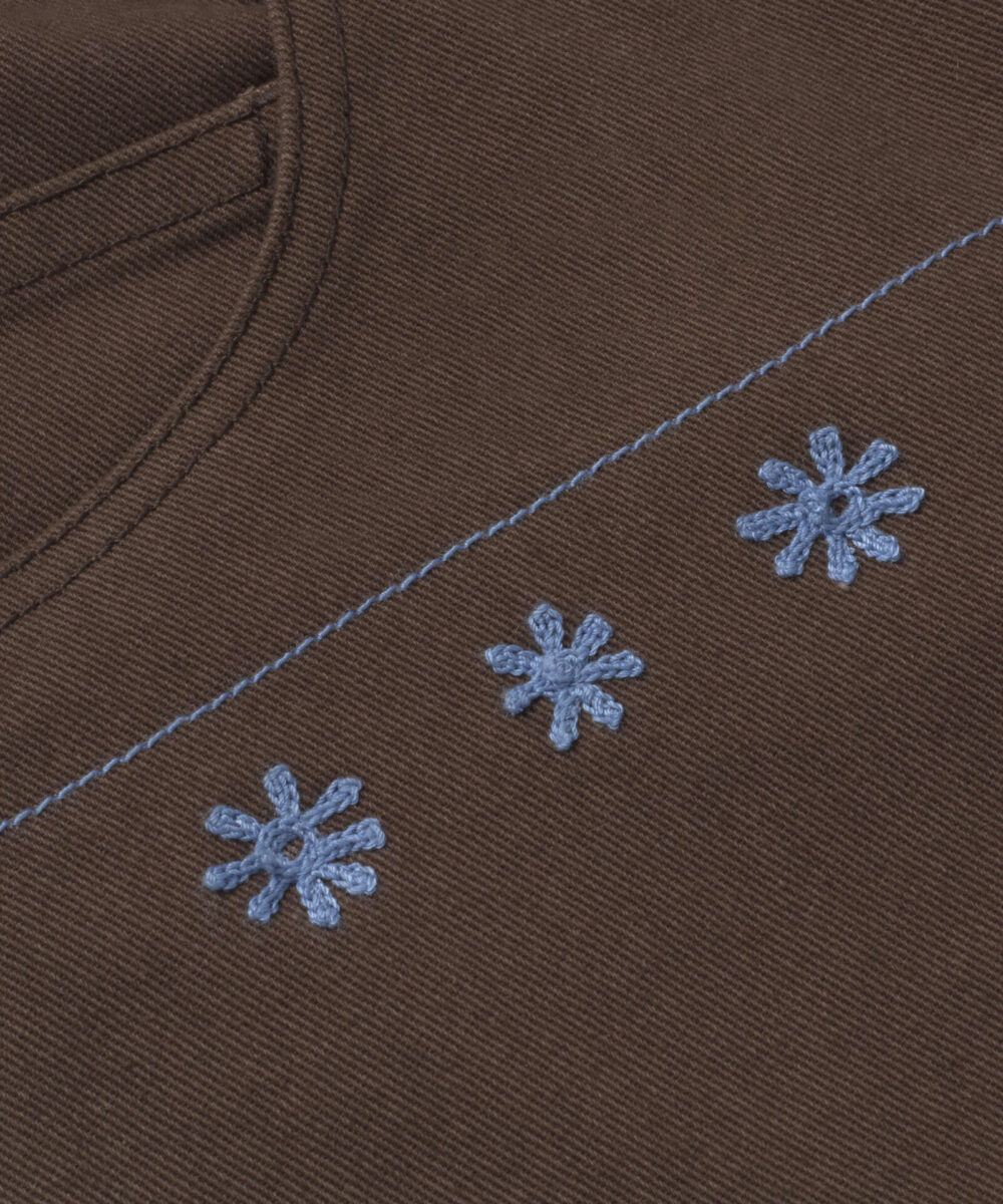 - Kleur: Bruin, Lichtblauw borduursel